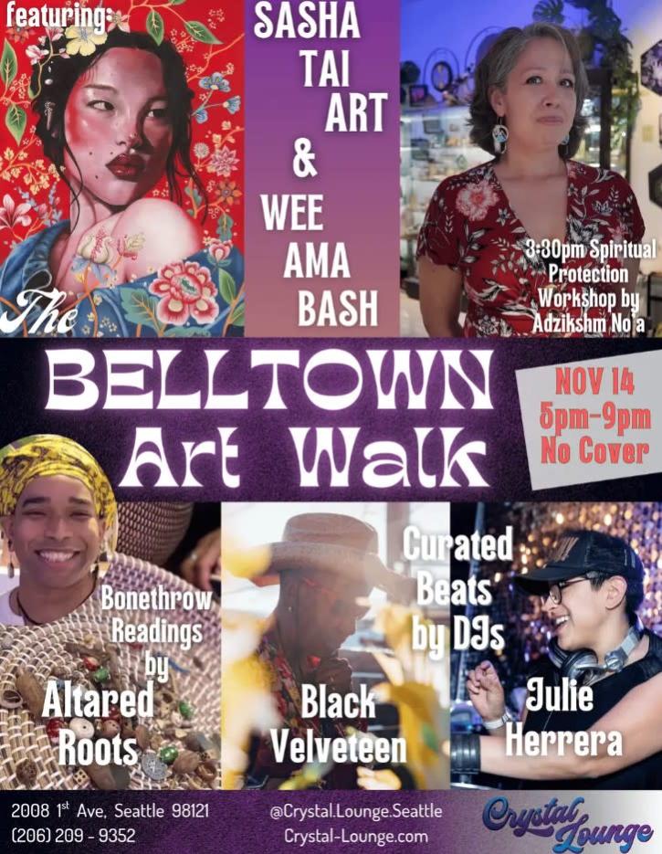 Join for our NO COVER Belltown Art Walk event. Get your groove on with renowned local DJs, Julie Herrera & Black Velveteen, featured artists, Sasha Tai & Wee Ama Bash. Boost your wellness with Healers, Crystals, & Classes. Shop, Dance, and Heal.